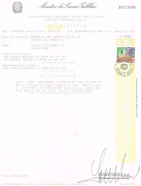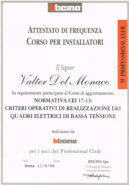 Riportiamo le certificazioni e gli attestati conseguiti in questi anni di attività